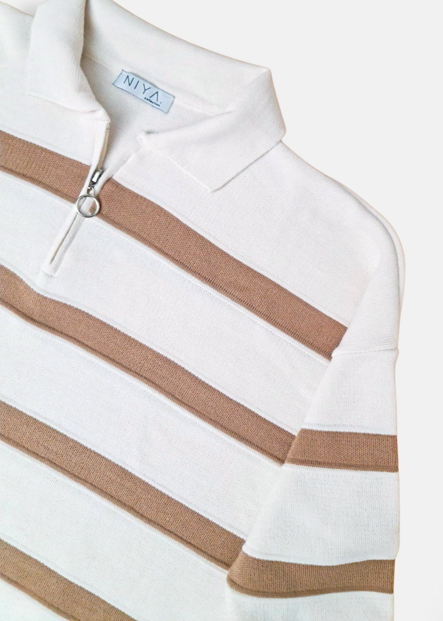 Pull en maille rayé  Blanc & Beige
