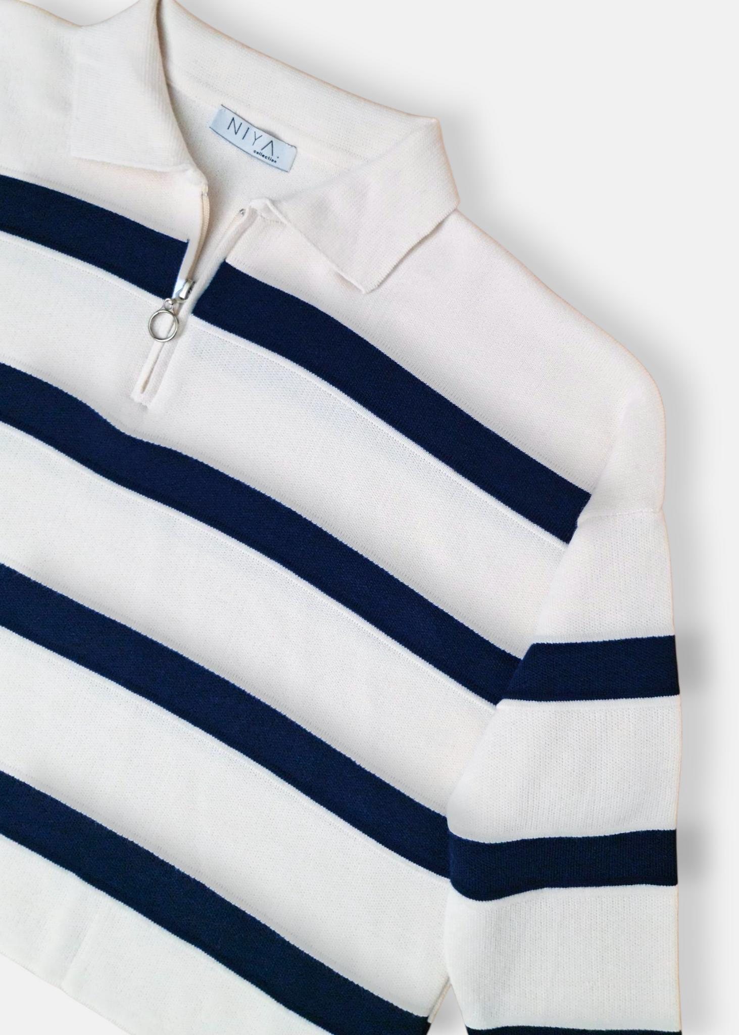 • Charger l'image dans la galerie, Pull en maille rayé Blanc & Bleu