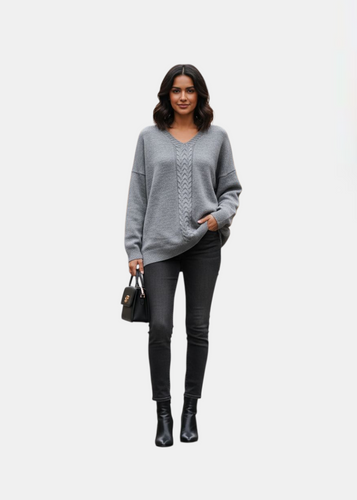 Pull oversize à maille torsadée Gris