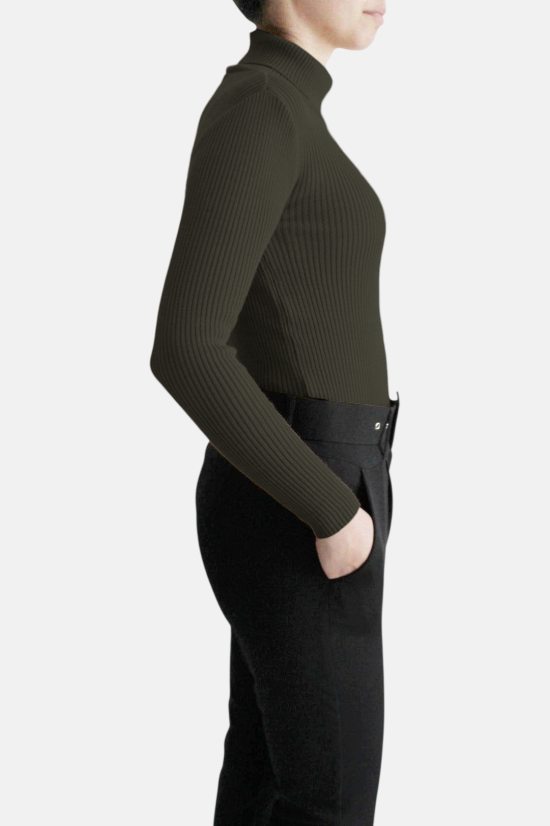 Pull tendance qui vous gardera au chaud durant les saisons froides. Pull en maille côtelée, col roulé, longue manche, coupe cintrée.