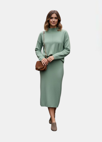 ADHIL Contrast Stitch Knit Cardigan Set with Scarf Cream White