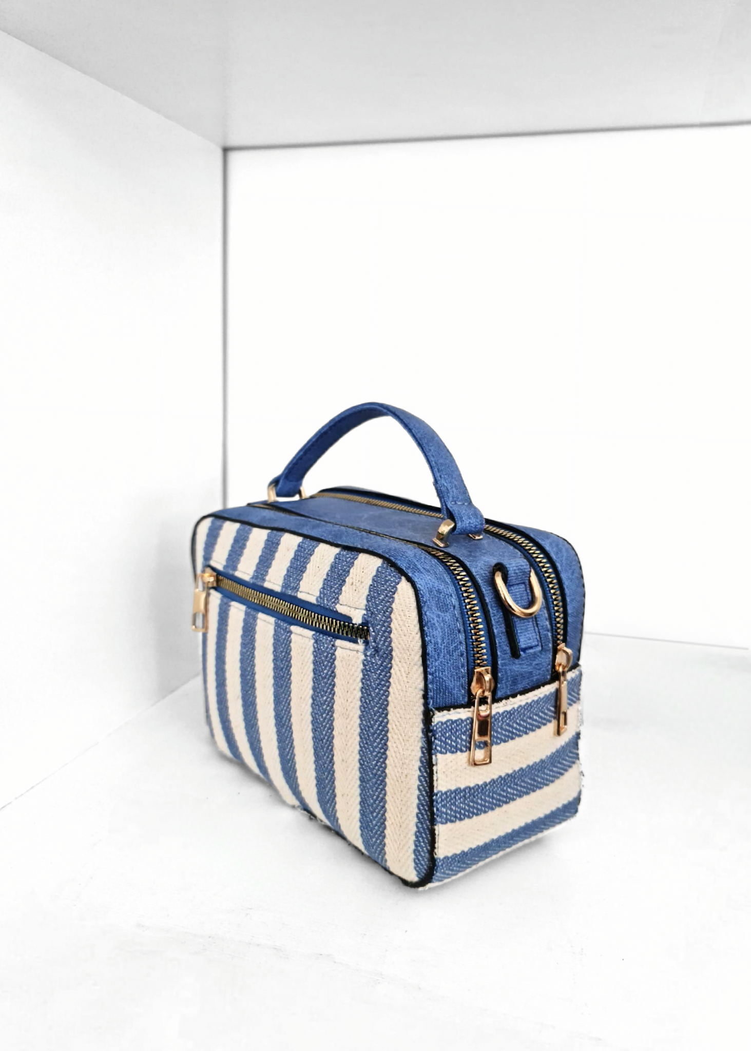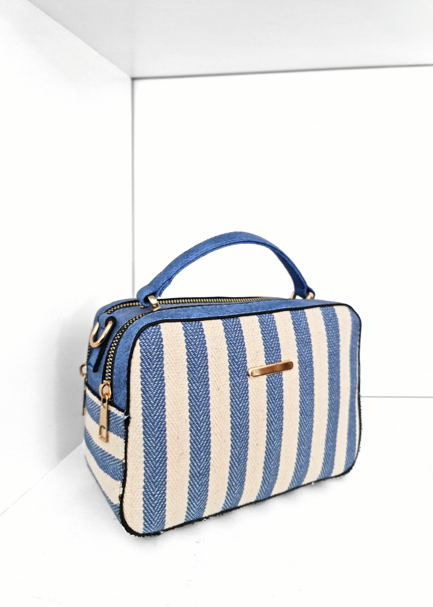 • Load image into Gallery viewer, Sac coton Bleu & Blanc crème